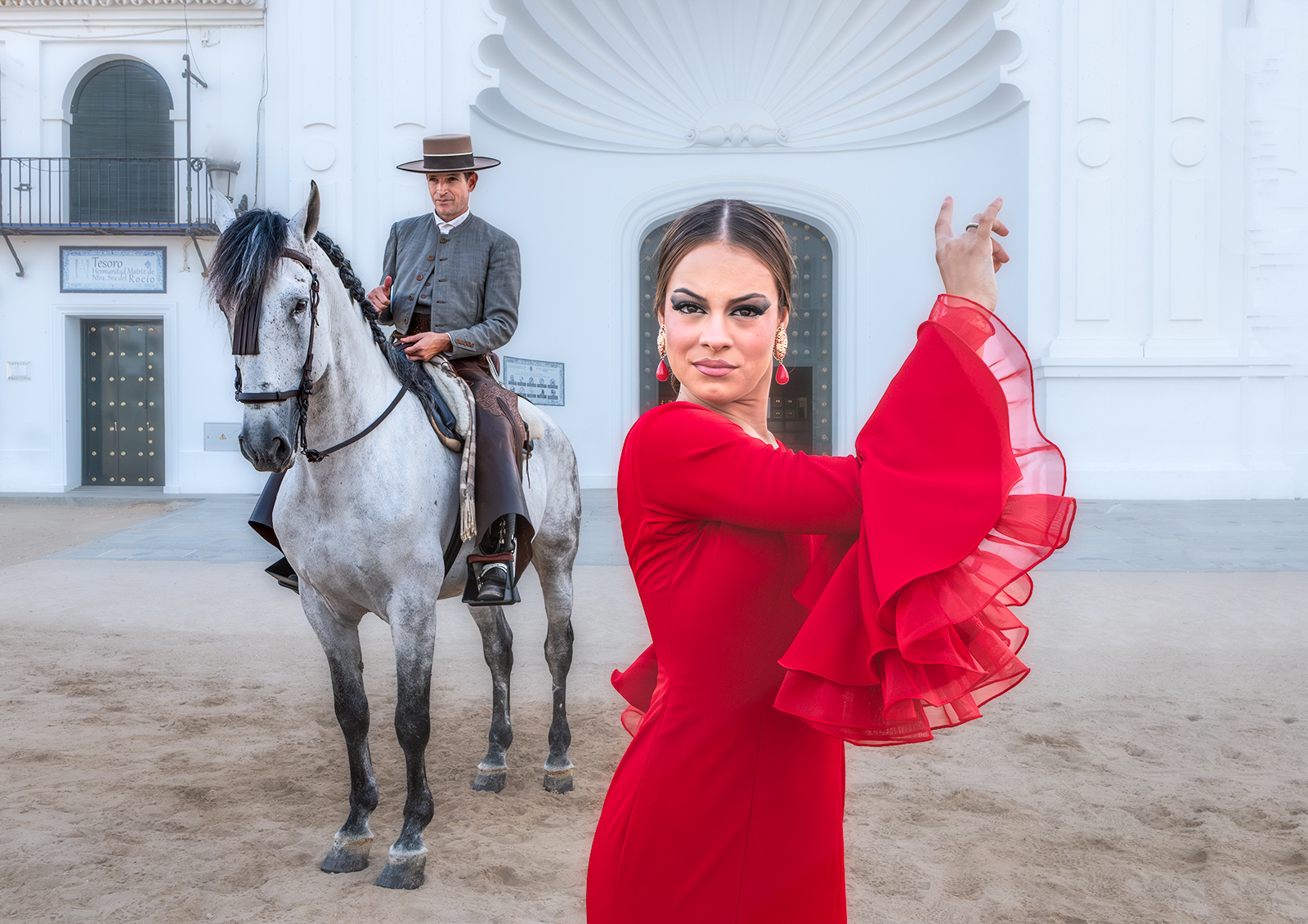 We had a wonderful early morning shoot with a rider from Seville and a young Flamenco dancer in the unique town of El Rocio